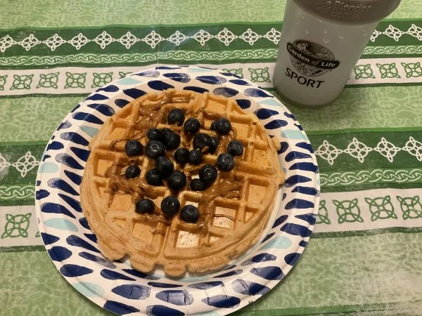 No syrup needed, blueberries were sweet enough and the almond butter helps too.Where’s the maple syrup…. ???