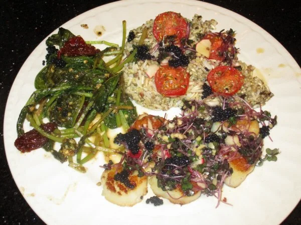 You have become a great cookSeared Sea Scallops with a JMicrogreen Red Cabbage & Lime/Miso/Diced Radishs & Black Seaweed Pearls