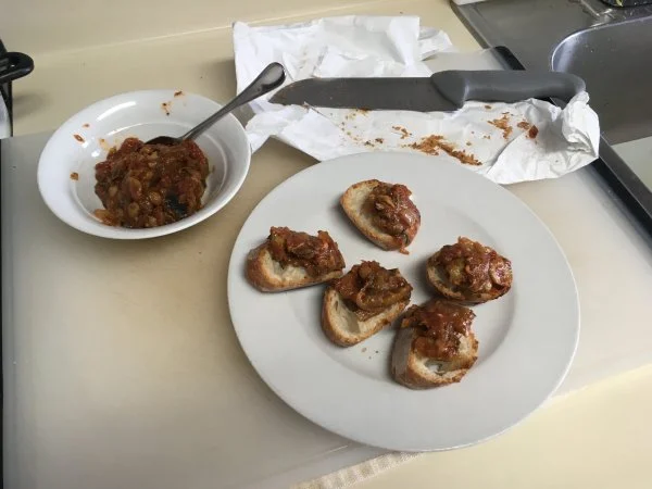 The chocolate ingredient caught me off guard. Interesting.NYA’s, if ya wanna have a delicious appetizer for anytime, EGGPLANT ? CAPONATA, would be a great crowd pleaser…