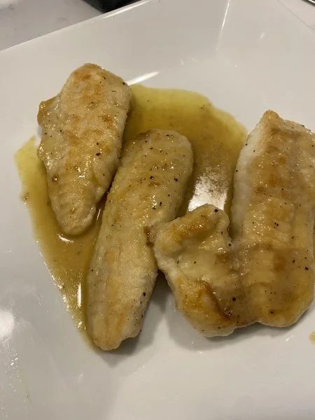 No egg on the fish. Flour, oil, lemon, finish with unsalted butter.What's the difference between meuniere and Francese? I looked up some recipes and the only thing I can see different is francese has wine and broth added.