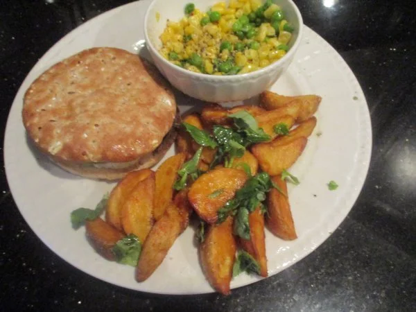 Looks good but burgers are made with beef and BBQued thats a chicken pattyPan Seared Bruschetta Chicken Burger (tomato, basil, garlic) on a toasted Sandwich Thin w/a couple of leaves of fresh Basil