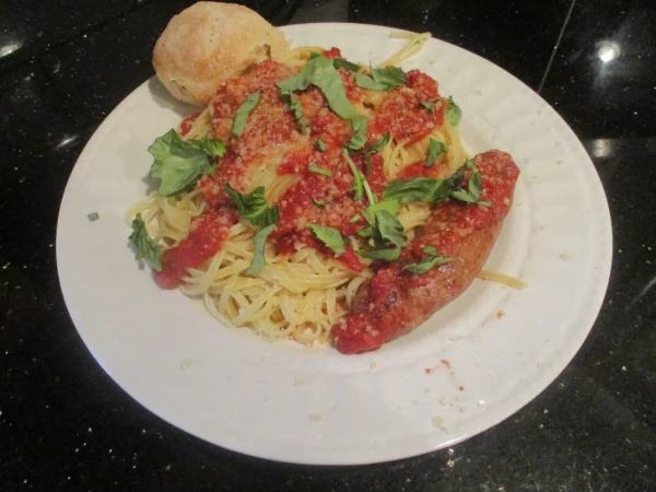 Go for it ( her)Grilled Sausage & Liniguini w/shredded fresh Basil