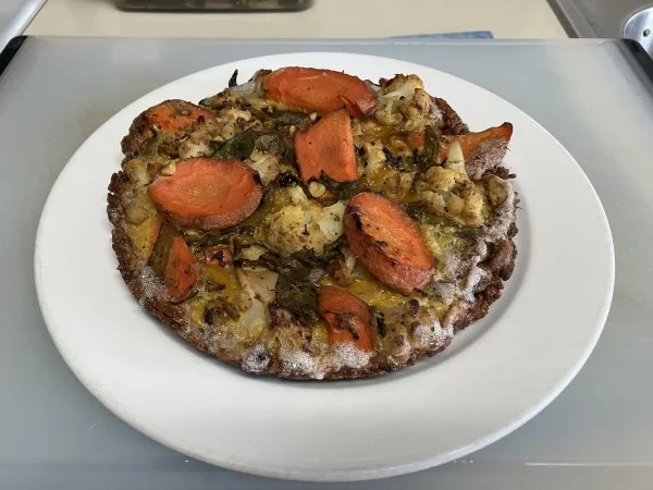 Chicken Milanese stack - interesting as not just a pile of wet salad on top. Bottom chicken still crunchy at the end of the eat.