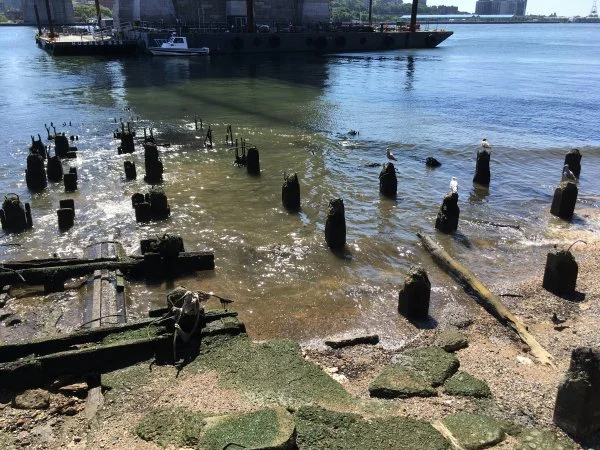 From Redhook, cranes and a retired Grey workhorse behind that barge, it been there as far as I can recall… cellfish…